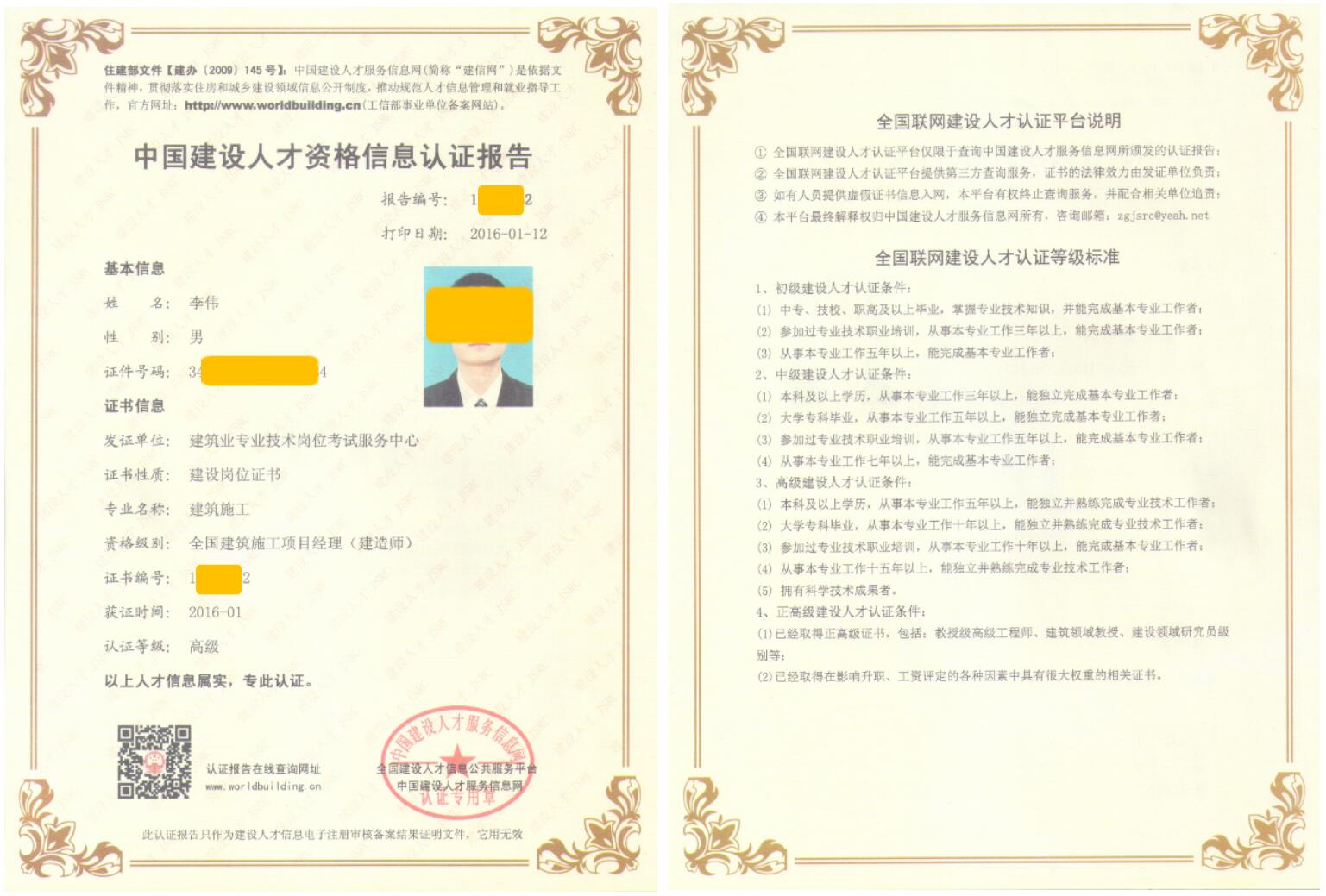 頒發(fā)證、卡、建信網認證報告實例